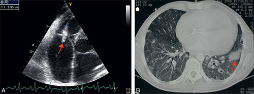 • Les principales complications sont : insuffisance cardiaque, embolies systémiques, embolies pulmonaires septiques, anévrisme infectieux, hémorragie, choc septique, BAV (abcès septal), vascularite, foyers infectieux à distance (méningite, arthrite, spondylodiscite, abcès viscéraux, etc.).