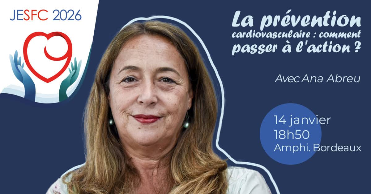 Lors des Journées Européennes de la SFC 2026, ne manquez pas la conférence « La prévention cardiovasculaire, comment passer à l’action ? », animée par Ana Abreu, sous la modération de Victor Aboyans, pour explorer les leviers concrets de la prévention.
