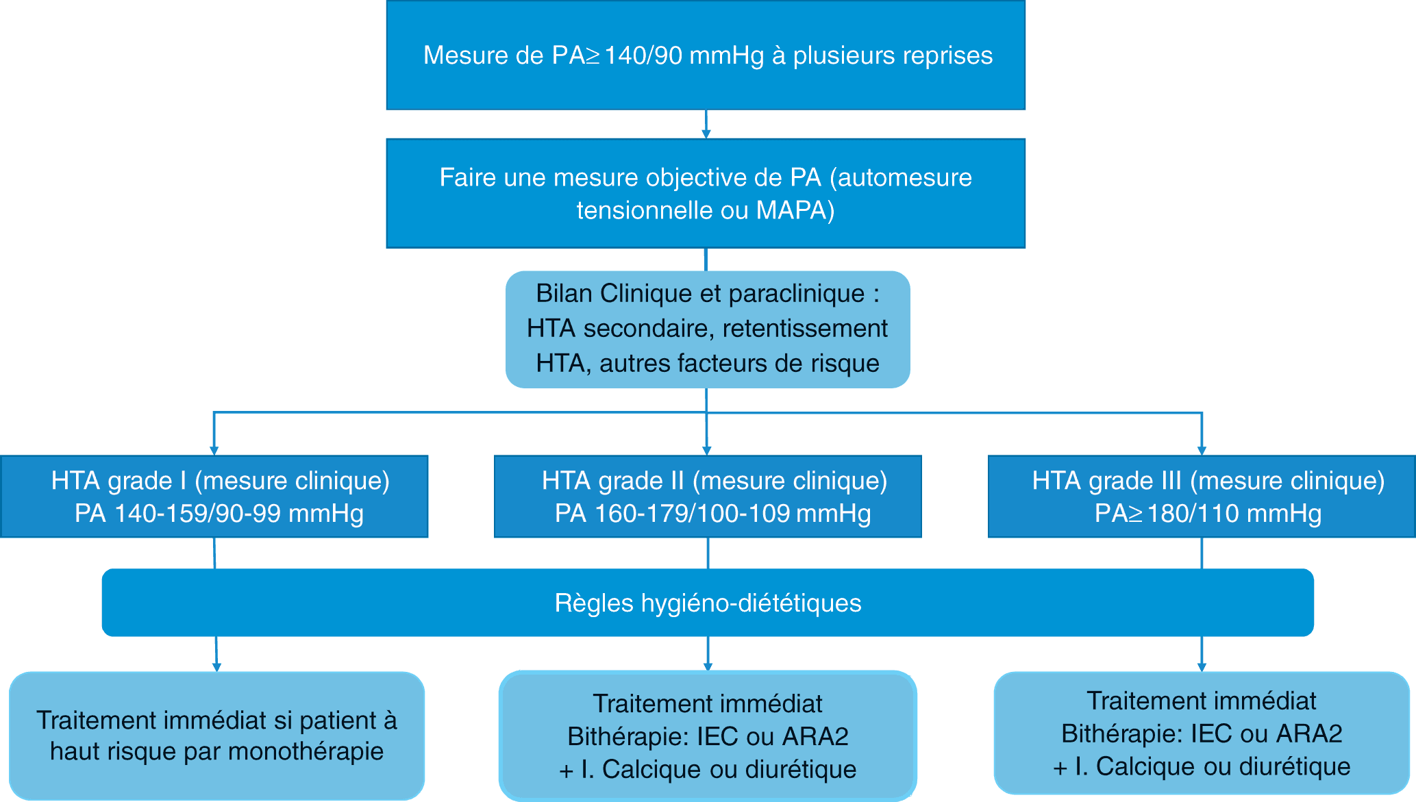 L’hypertension artérielle (HTA) est définie comme le niveau de pression artérielle (PA) à partir duquel les bénéfices de la réduction sont indiscutables en tenant compte des inconvénients liés au traitement. En Europe, selon les recommandations publiées en 2018, l’HTA est définie par une pression artérielle systolique (PAS) ≥ 140 mmHg et/ou une pression artérielle diastolique (PAD) ≥ 90 mmHg. Il est à noter que les recommandations américaines récentes ont modifié le seuil de définition de l’HTA à PAS ≥ 130 mmHg et/ou une PAD ≥ 80 mmHg. L’HTA, facteur de risque cardiovasculaire majeur, est une pathologie fréquente qui nécessite une prise en charge optimisée pour obtenir un contrôle tensionnel chez la majorité des patients.