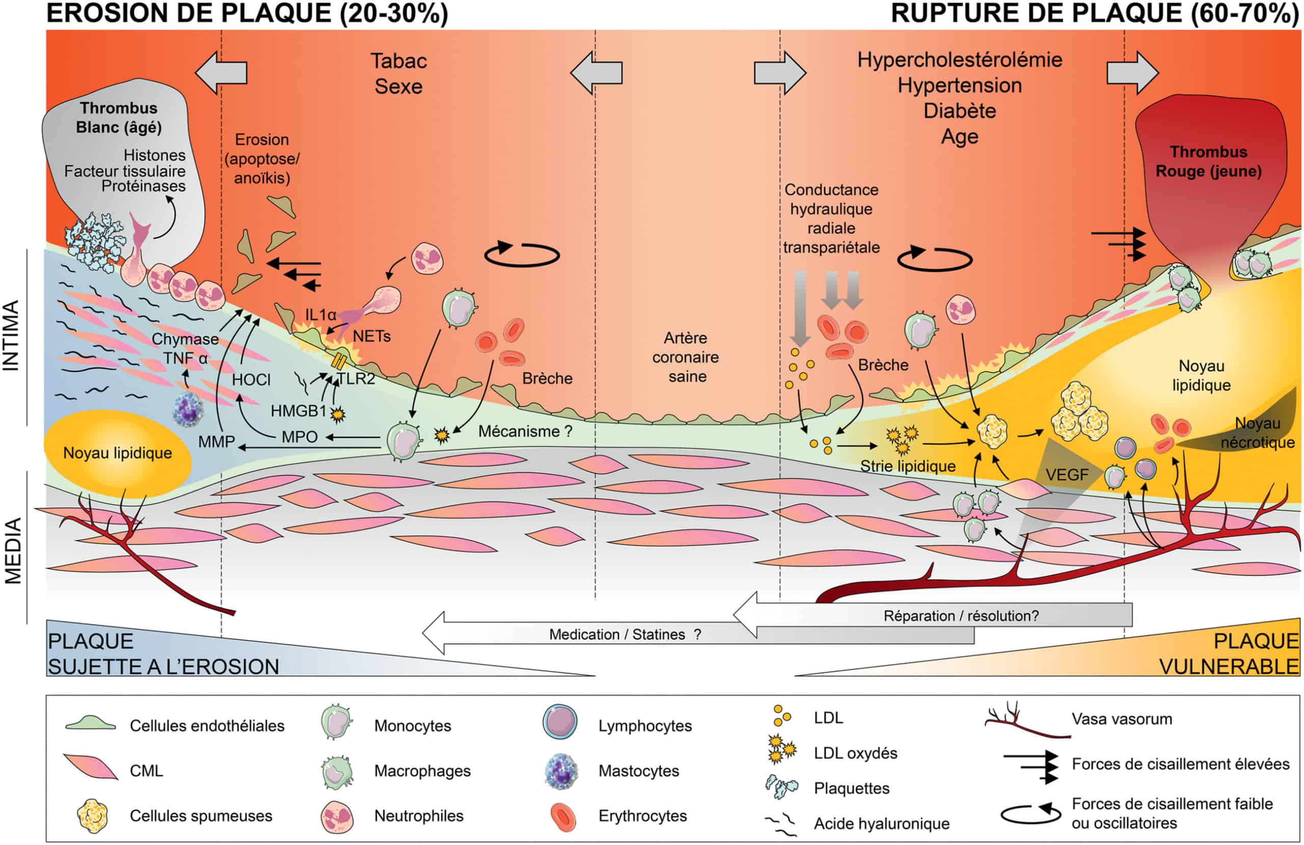 - Les plaques coronaires sujettes à l’érosion sont responsables de 20 à 30 % des événements coronaires aigus.