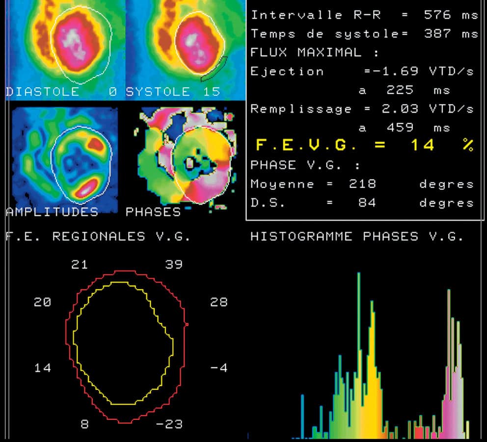 - L’exploration de la fonction ventriculaire gauche, notamment la mesure de la fraction d’éjection du ventricule gauche (FEVG), élément pronostique majeur, est en général réalisée par l’écho-Doppler cardiaque. Il est possible de faire appel aux techniques isotopiques ou à l’IRM pour préciser cette étude.