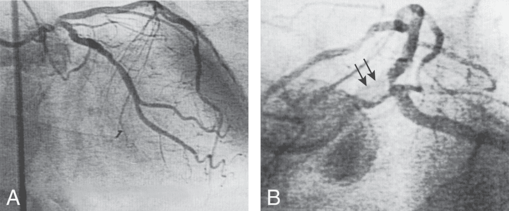 - Dans certaines situations, les artères coronaires sont angiographiquement normales et un spasme coronaire peut être documenté, soit lors du cathétérisme sélectif de l’artère, soit après injection par voie intraveineuse d’un médicament vasoconstricteur comme la méthylergométrine.