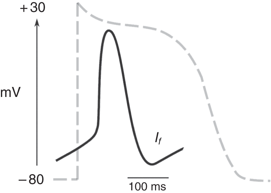 - Au niveau nodal, le potentiel d’action est différent : il est plus court, n’a pas de potentiel de repos et est responsable de l’automatisme de ces cellules.