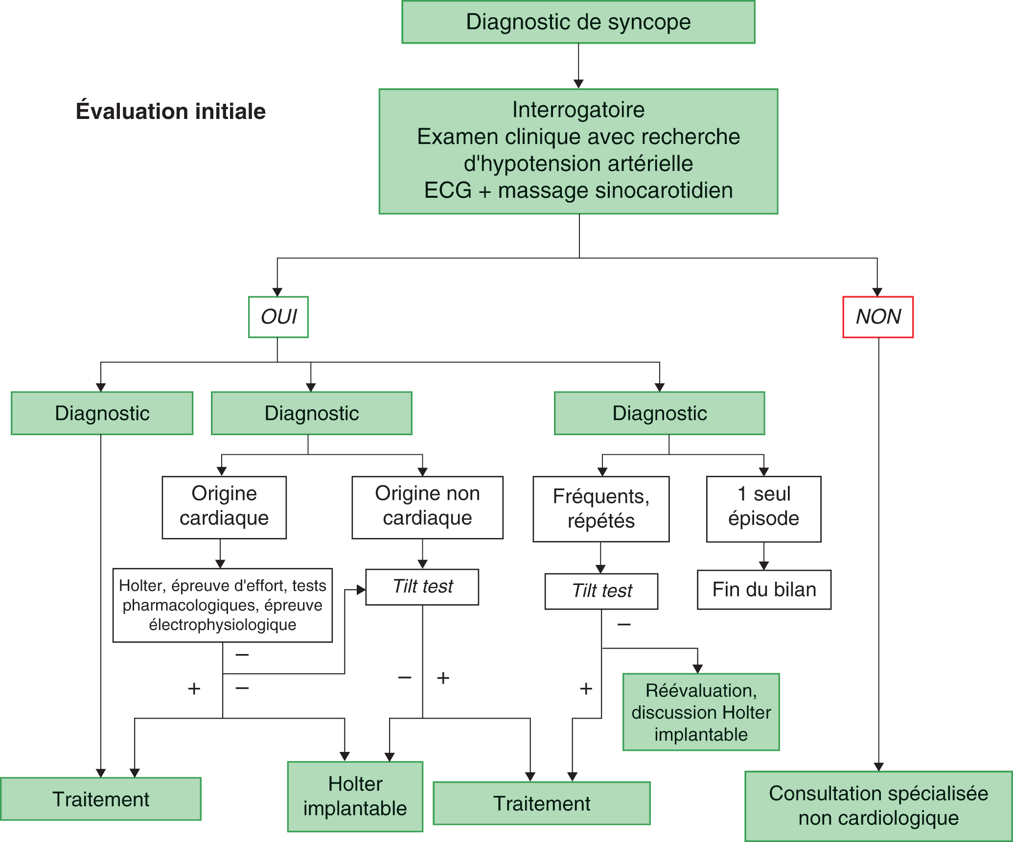 - Le reste du bilan de syncope (Holter de durée variable, moniteur cardiaque implantable, tilt test, exploration électrophysiologique) sera réalisé selon l’orientation diagnostique.