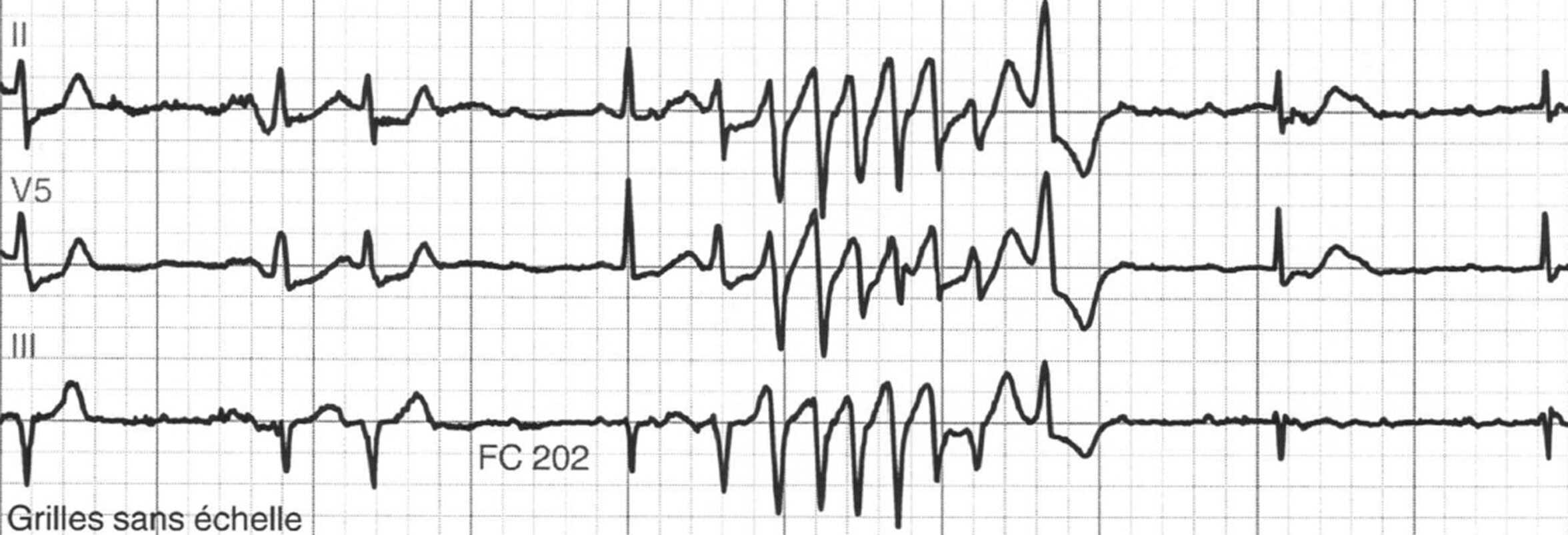 En cas de crise mal tolérée, seul un choc électrique permettra sans risque de réduire la tachycardie ventriculaire (risque de dégradation en fibrillation ventriculaire). En cas de tachycardie ventriculaire bien tolérée, l’utilisation d’un antiarythmique de classe II ou IV pourra être proposée en l’absence de cardiopathie sous-jacente. Dans le cas contraire, il faudra proposer un antiarythmique de classe III en choisissant l’amiodarone.