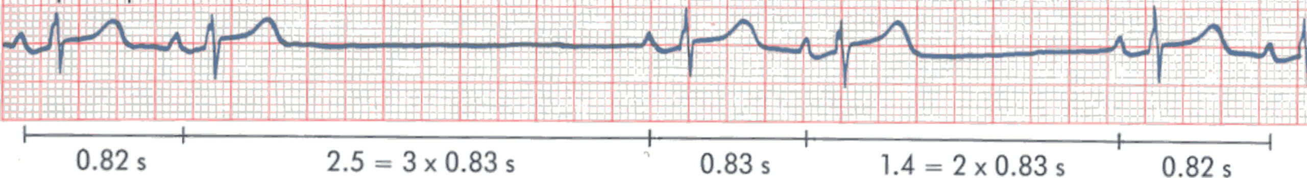 - L’espace QT doit être mesuré entre le début du QRS et la fin de l’onde T. Sa durée normale varie avec la fréquence cardiaque (elle diminue avec l’accélération du rythme cardiaque). Valeur normale : environ 400 ms pour une fréquence cardiaque de 60/min. Il existe des méthodes de calcul pour « corriger » le QT en fonction de la fréquence cardiaque (QTc = QT mesuré/√Intervalle RR(en ms)).