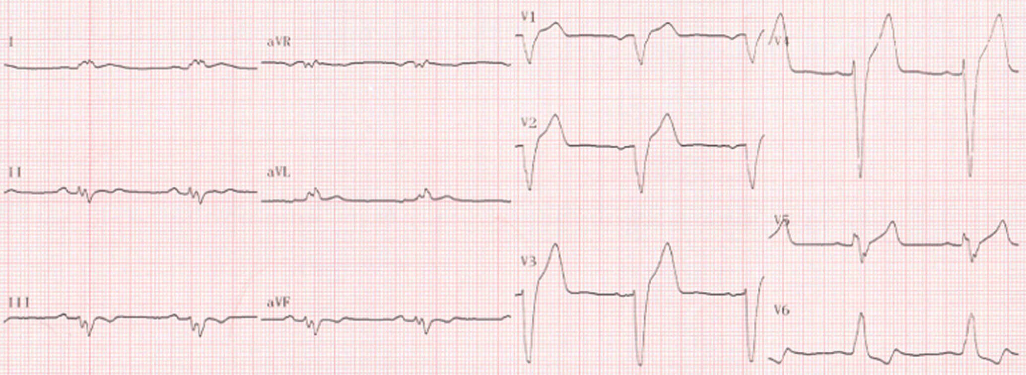 - DII, DIII, aVF et V1 à V3 : septal profond ;