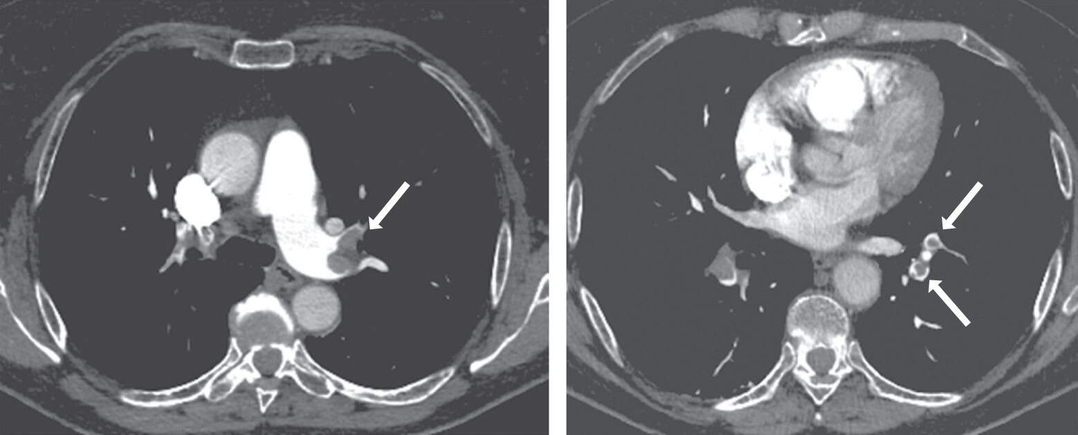 - La douleur thoracique ou la dyspnée ne sont observées que dans 70 % des cas d’embolie pulmonaire documentée.