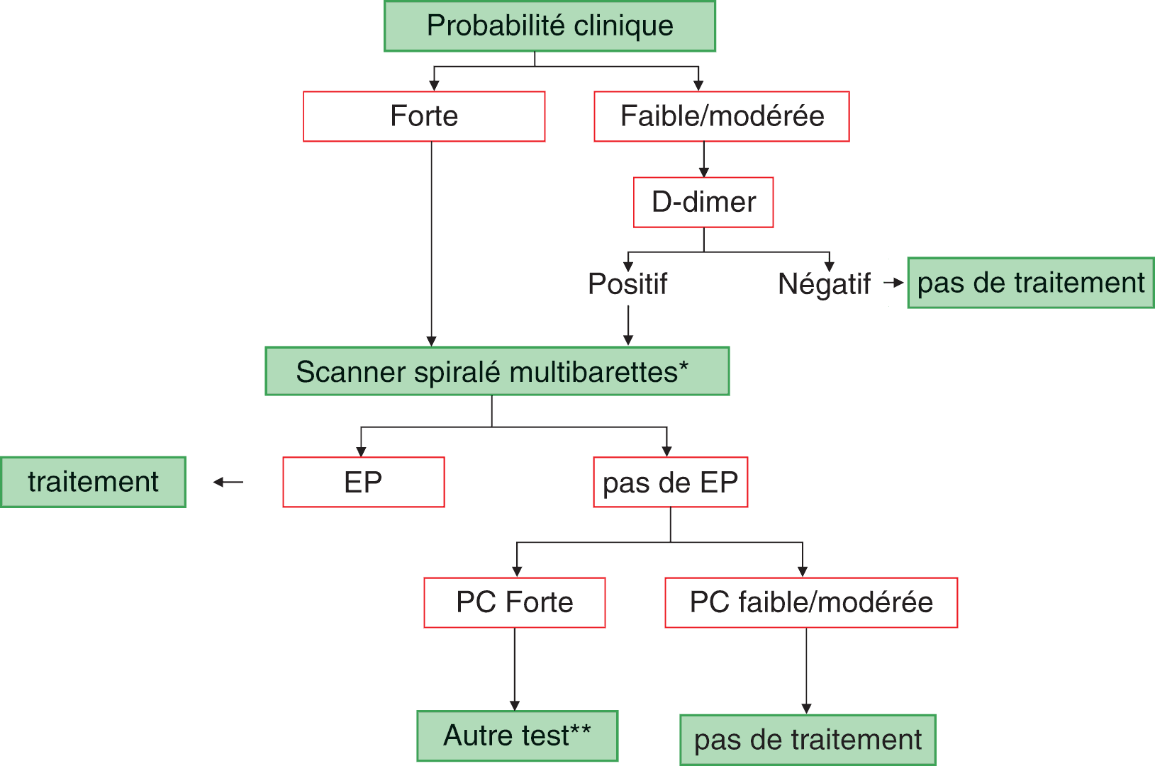 - Il n’y a pas d’indication à doser les D-dimères en cas de probabilité clinique élevée.